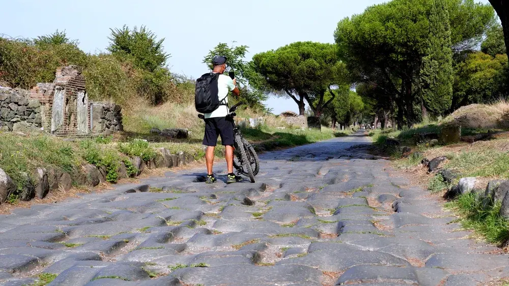 Tall umbrella pines line parts of the road, and traffic is limited in many areas, creating a surprisingly peaceful environment only a short distance from central Rome.